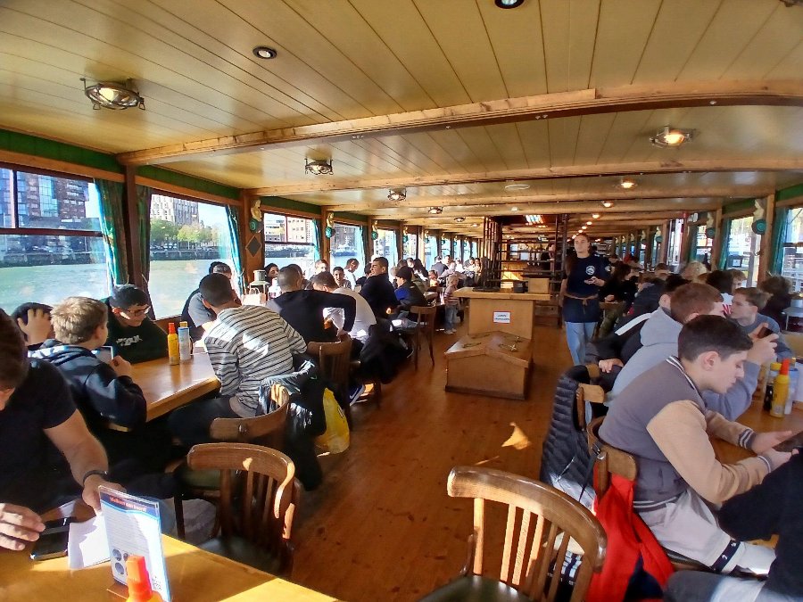 The highlight of the day was a boat trip on the river, where we were treated to a variety of delicious pancakes. Everyone could eat as many pancakes as they wanted. The boat trip was sponsored by Richard de Bijl. Afterwards, the participants visited an entertainment center in Rotterdam.